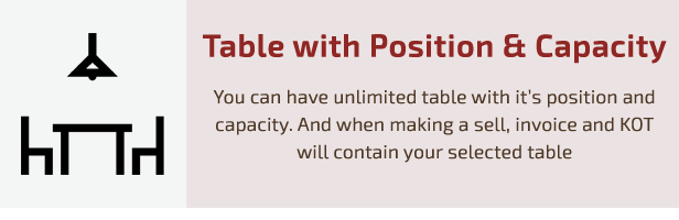 You can add all of your tables of your outlet, later you can choose the table when making a sell, that table name will be shown in the invoice and KOT