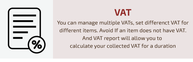 Our Report module gives you more than 15 reports to check your business status and make your besiness decision. Our report includes: Daily Summary Report, Inventory Report, Tax Report, Supplier Report, Supplier Due Report, Profit Loss Report, Sale Report by Month, Sale Report by Date, Food Menu Sales, Detailed Sale Report, Pur. Report by Month, Pur. Report by Date, Pur. Report by Ingredient, Detailed Pur. Report, Expense Report, Waste Report